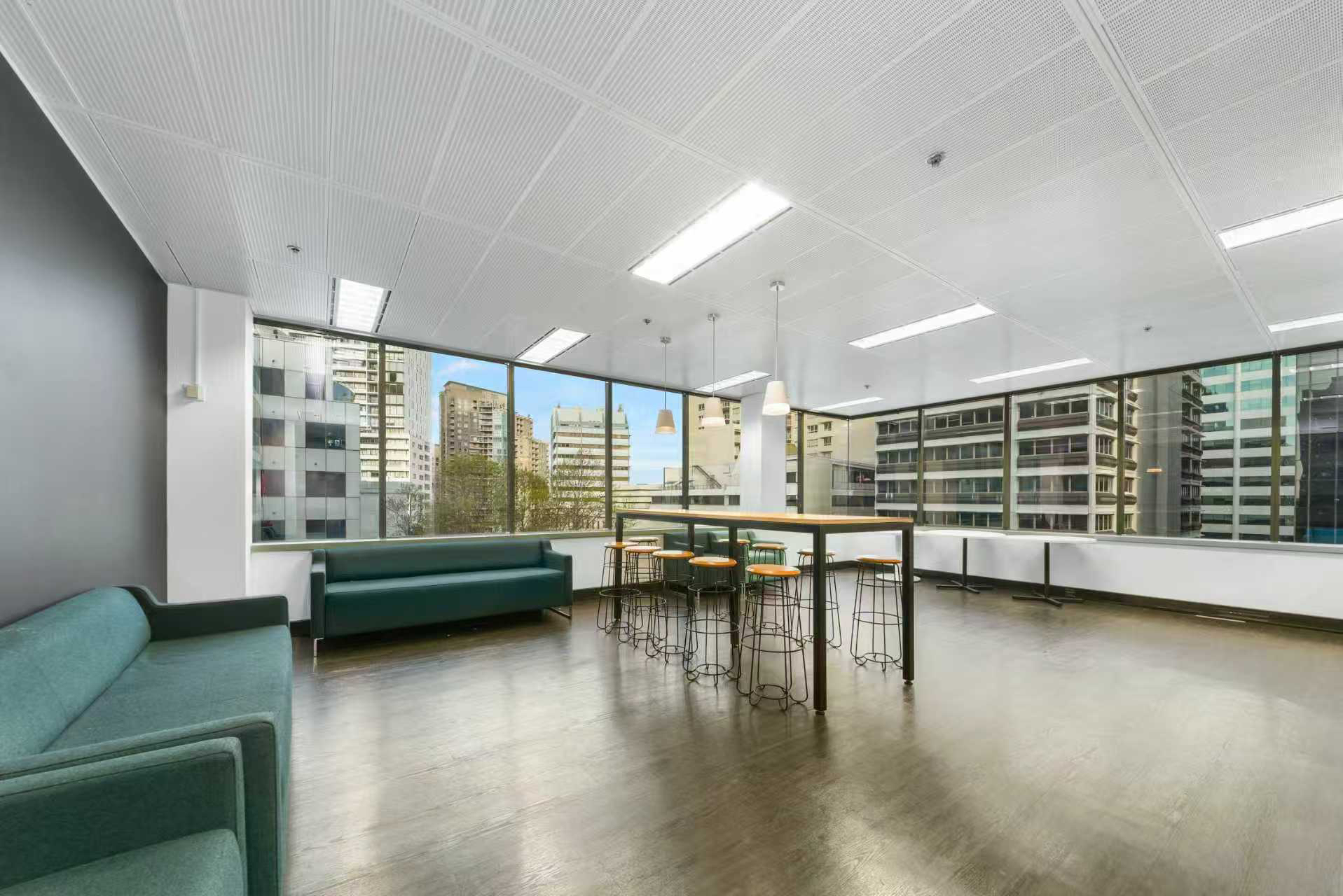 Top-floor office with expansive tree-top and skyline views across Chatswood and beyond. A premium, light-filled environment for businesses seeking sophistication and impact.